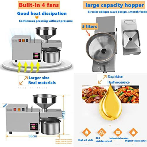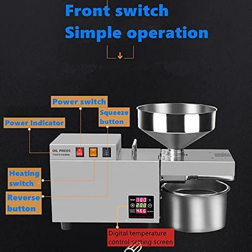• [PRENSADO DOBLE EN FRÍO Y EN CALIENTE]: Nuestra prensa de aceite admite prensado en frío y prensado en caliente: el prensado en frío puede retener mejor el valor nutricional del aceite; el prensado en caliente es más eficiente y el aceite es puro y aromático. Puedes elegir la forma en que te gusta exprimir el aceite.