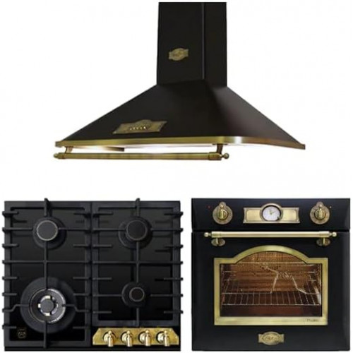 Kaiser Juego de estufa de gas EH 6355 ElfEm + KCG 6335 ElfEm + A 6315 ElfEm, estilo retro empotrable, campana extractora [Clase de eficiencia energética A]