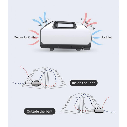• Aire acondicionado portátil --- Equipado con tres conductos de aire Separa la circulación de frío y calor, la capacidad de enfriamiento no se pierde, el consumo de energía es pequeño y el ahorro de energía ahorra más energía. El aire acondicionado no se escapa y el flujo de aire caliente está aislado dentro y fuera de la tienda.