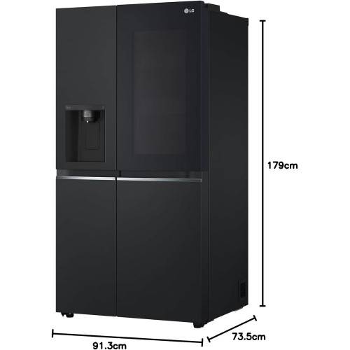 LG GSGV80EPLL Frigorífico Americano Side By Side InstaView, 635L, Frigorífico Total No Frost, Wi-Fi, Door & Linear Cooling, Dispensador de Agua y Hielo con conexión, Fresh Balancer, Negro Mate [Clase de eficiencia energética E]