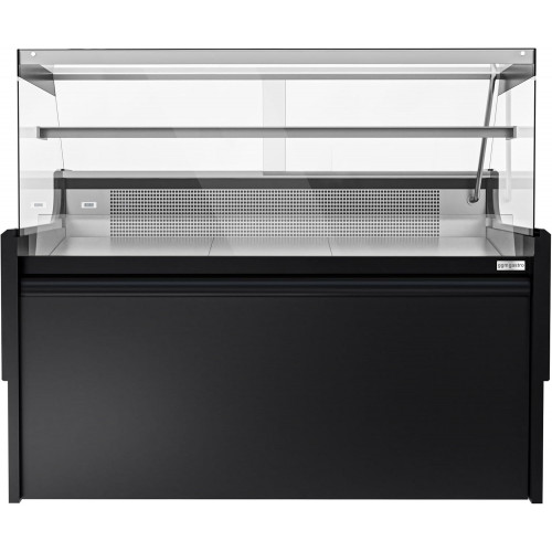 Cristal frontal cuadrado 2 Ventana corredera Pantalla digital Iluminación interior Volumen neto: 140 litros Con cierre de llave Estante superior de vidrio esmerilado Regulador electrónico con pantalla de temperatura Sistema de refrigeración ventilado Pies regulables en altura Encimera de mármol Limpieza fácil Calidad Superficie de presentación en Acero inoxidable Revestimiento exterior lacado Refrigeración R290/150 g Sin CFC Temperatura: 2 °C hasta 8 °C Función de descongelación automática Sistema de refrigeración ventilado Conexión Potencia: 760 Watt Conexión eléctrica: 1N/PE / 230 V. 50 Hz Dimensiones Dimensiones exteriores L x D x H: 1.580 mm x 975 mm x 1.285 mm Dimensiones interiores L x D x H: 1.500 mm x 800 mm x 850 mm Directivas | Producto por supuesto según las directivas de higiene y seguridad. El artículo lleva el marcado CE de acuerdo con la Directiva Material conforme a las normas alimentarias europeas