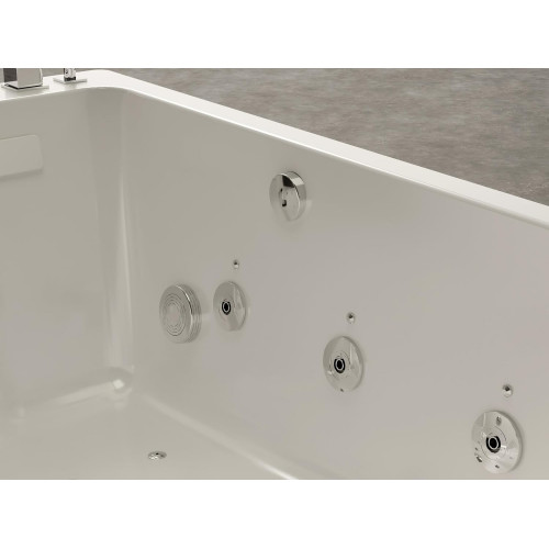TECNOLOGÍA: JETS "AGUA/AIRE": El masaje con chorros de agua Varias boquillas grandes orientables están dispuestas en las paredes de la bañera, y también pequeños hidrojetes en la parte inferior. Una bomba de agua silenciosa de 1125 vatios impulsa agua a presión.