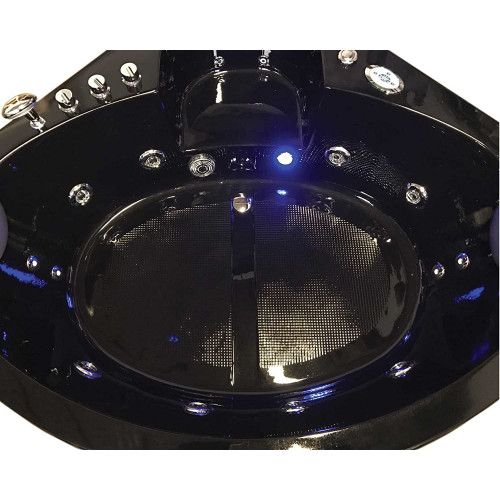 - 1 Ducha multifunción 1 Conmutador Regulador de presión de agua Aspiración agua Cascada modelo americano incluida Circulación agua 1 Luces Led grandes Grifería incluida Bañera de acrílico sanitario de alta calidad de color negro Peso: 100 kg Estructura de acero cromoterapia