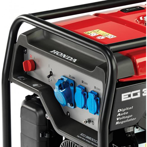 El generador Honda eg3600cl está diseñado para los usuarios más exigentes que necesitan fiabilidad y robustez, estas calidad lo hacen adecuado para aplicaciones comerciales más exigentes y para el alquiler. Tiene la capacidad de detectar y ragire a las variaciones de tensión de salida, el d-avr proporciona un output no fluttuante. Versátil y fácil de usar. – Oil Allert: impide la corrupción del motor, mediante el apagado automático, en caso de que el nivel del aceite scenda bajo el nivel de seguridad. – Depósito de combustible más grande para garantizar un funcionamiento continuo y prolongado – Sistema de vibración de goma óptima gracias a los soportes especiales Motor inclinados de 45 °. Simplemente – Ruedas lisas y estables para permitir a un solo operador de poder mover la unidad. Características técnicas – Tecnología: d-avr Tipo monofásico – Potencia máxima potencia: 3600 W – Uso: 3200 W – Tensión 230 V – Frecuencia 50 Hz – Corriente 13,9 A – Motor gx270t2 – Tipo 4-tempi Motor de 4 tiempos, 1 cilindro Cilindrata – 270 cc – alesaggio x carrera: 77 x 58 mm revoluciones motor 3000 RPM/min Sistema de refrigeración de aire forzata – Encendido transistorizzata – Capacidad Aceite motor 1,1 LT – Capacidad depósito combustible: 24 L – Autonomía: 12 h – Arranque autoavvolgente – Dimensiones: 68,1 x 53 x h57,1 cm – Peso: 68 kg (a) presión acústica lwa-db 79 – Potencia acústica LpA – 96 dB (a)