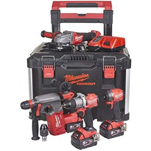Milwaukee 4933471149 4933471149-Juego de 4 maletas (18 V, con ruedas M18 Fpp4b-503p), Rojo y negro