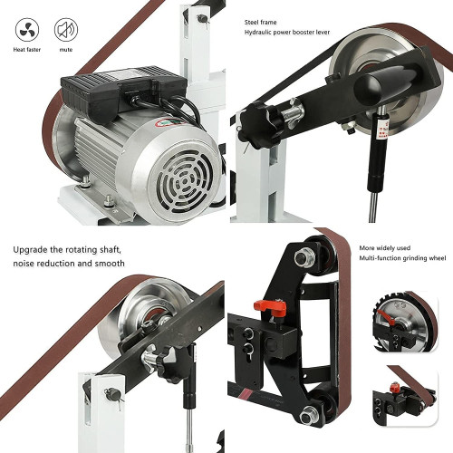 Descripción: Esta máquina de lijadora de cinturón de 2 x 82 pulgadas es un tipo de nueva tecnología de procesamiento con una amplia gama de aplicaciones, como moler, desbarbado, intermitente, pulido y afilado, que se utilizan para cinturones abrasivos giratorios de alta velocidad. El desbaste puede moler la asignación de mecanizado de 1 mm de espesor a la vez. Características: Toda la construcción de acero, simple, sólido y supersmooth. Todo marco de acero soldado en todas las articulaciones, control de correa muy sólido y preciso Esta configuración es corriendo suave y el seguimiento es muy estable. Cada detalle de este grindero de correa se fabrica para el máximo rendimiento, manejo y precisión. Molinillos de cinturón confiables diseñados específicamente para un trabajo detallado preciso Adecuado para pulir muebles, madera y otros artículos. Esta máquina está equipada con tres conjuntos de ruedas de molienda, y todas con barra móvil, pueden ajustar la longitud de la correa (1800mm-2100mm) Especificaciones: PODER: 110V Potencia del motor: 1.5 KW, 2HP Especificación de la correa: 2100 × 50 mm (82 "× 2") Rueda de contacto de goma: pH 427 × 12 " Velocidad de rotación: 2800R / min Platina plana: 2.5 "× 2.5" (ruedas grandes) Ruedas de aluminio sólido Ruedas de contacto de aluminio: 2.5 "× 2" Rueda de rastreo de aluminio y rueda de accionamiento de aluminio: 4 "× 2" Neumático de goma dentado: 300mm Rueda: 25 mm de diámetro y 40 mm de diámetro. Peso bruto: 51.5kg + 26.4kg Tamaño del paquete: 60.61 × 59.61 × 43.43cm + 63 × 36 × 28cm El paquete incluye: 1 x 1.5kw maquinaria eléctrica con todo el alambre de cobre 1 x varilla móvil independiente 1 x 3 juegos de ruedas de molienda
