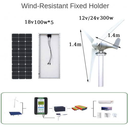 • Generador de turbina eólica de 300 W: la velocidad inicial del viento puede ser tan baja como 2,5 m/s, 3, 1,4 m de diámetro, mayor potencia, alta utilización de energía eólica, peso ligero y bajo. Fácil de montar, silencioso, totalmente sellado, para garantizar que el polvo y la lluvia no invadan el interior del ventilador.