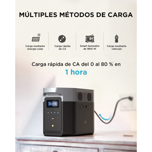 【Carga solar rápida】Con una entrada solar de hasta 800 W, DELTA Max es un generador solar que se carga rápidamente. Con un solo panel de 400W, se puede cargar en 6-12 horas. Ideal para los cortes de energía.