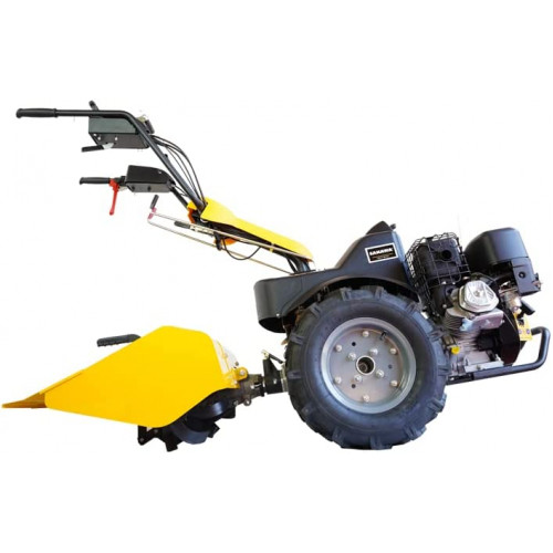 Esta maquina monta un motor OVH Briggs de 15 CV, 3 velocidades hacia delante y 3 velocidades hacia atrás, el manillar es totalmente reversible para adecuar a cualquier tipo de trabajo, además monta un filtro de aire de cartucho y espuma para un doble proceso de filtrado de gran capacidad, lleva un embrague sin ningún tipo de correa lo que le confiere menor mantenimiento y un trabajo mas profesional, además incorpora un bloqueo de diferencial para terrenos donde requiera una mayor capacidad de tracción.