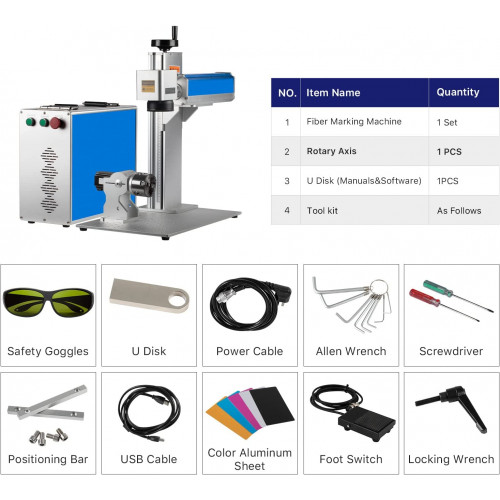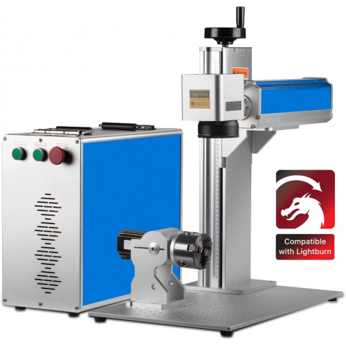 Cloudray JPT 50W Máquina marcado de fibra Grabadora Metal Acero inoxidable para marcado de metales (300x300mm + eje giratorio D80)