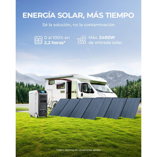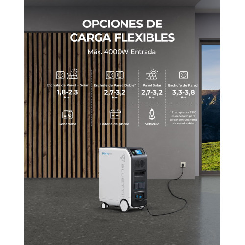 • [Carga Flash] - EP500Pro se puede cargar en solo 1,8 horas a través de una carga dual de 2400W PV + 3000W CA (se requiere un cable de carga de 30A CA) para alcanzar una potencia de entrada máxima de 4000 W.