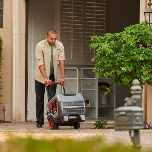 - Con un diseño que es un 45% más compacto y un 30% más ligero y estandar que otros generadores, mover y almacenar tu generador no será un problema. El estilo maletín, con manillar telescópico hace que puedas mover tu generador fácilmente.