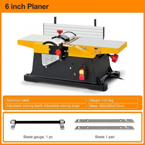 AMPLIAMENTE UTILIZADO: Se utiliza para el procesamiento y cepillado de madera, especialmente adecuado para piezas pequeñas de producción de muebles de carpintería, producción de obras de arte de bricolaje, luces de procesamiento de piezas de madera, etc. ACABADO LISO: La cepilladora de mesa está diseñada para cepillar madera vieja, desgastada, áspera y desgastada, y para darle un acabado excepcionalmente suave. Las cepilladoras de carpintería se pueden utilizar para planear madera, bambú, revestimiento de nailon, etc.