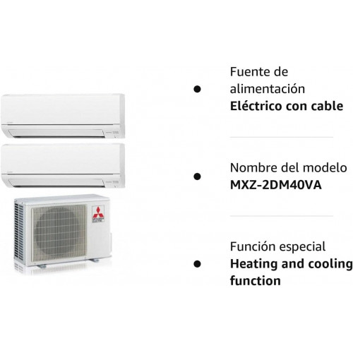 Motor exterior Mitsubishi Electric MXZ-2DM40VA Split Dual Inverter CC de 14000 BTU, Clase A++ y gas R410 + Unidad interior MSZ-DM35VA (color blanco) de 12000 BTU + Unidad interior MSZ-DM25VA (color blanco) de 9000 BTU.