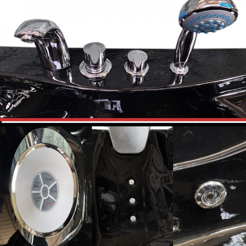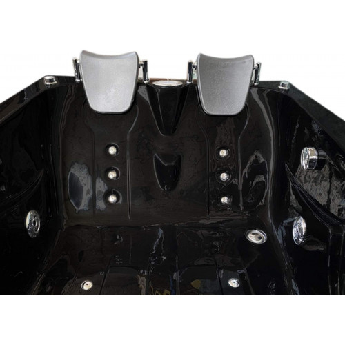 BAÑERA HIDROMASAJE Modelo "BLACK HAVANA" 170 X 115 X h 60 cm - BAÑERA PARA 2 PERSONAS Objeto nuevo – Embalado Certificado EU - ESPECIFICACIONES TECNICAS Medidas de la bañera: base 170 x 115 Cm alto 60 cm Bomba Whirlpool 1,5HP Sistema de control de las toberas de aire 2 Apoyacabezas 5 toberas grandes cromadas 10 toberas pequeñas Sistema de protección contra la dispersión de electricidad (cortacircuitos automático) Tablero de control (computadora) Radio 1 Ducha multifunción 1 Conmutador Regulador de presión de agua Aspiración agua Circulación agua Grifería incluida Bañera de acrílico sanitario de alta calidad de color negro Peso: 100 kg Estructura de acero