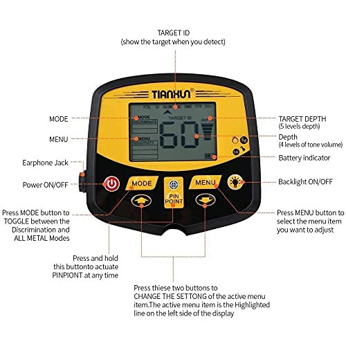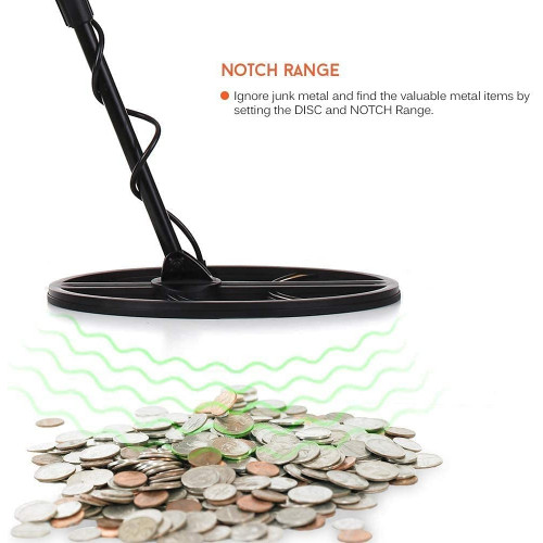 3 Modo de detección: todo metal (detectar todo tipo de metal), disco (tipo de metal discriminado), PINPOINT (encuentre la ubicación exacta de un objetivo)