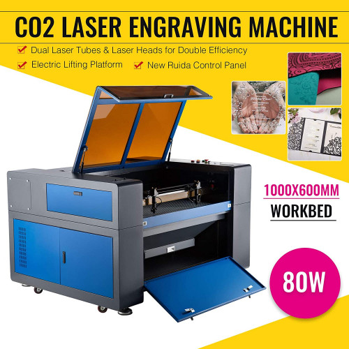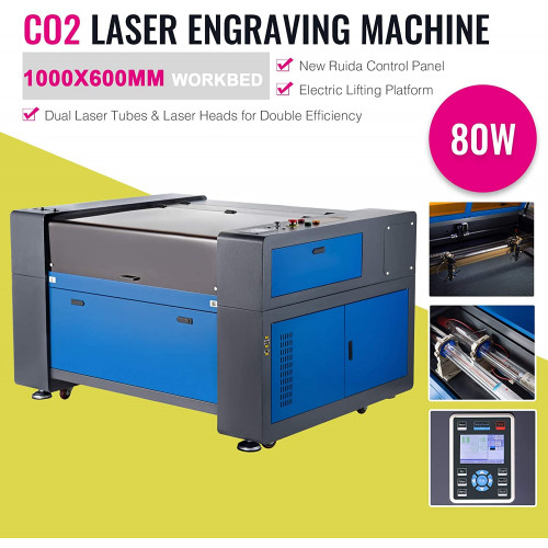 Orion Motor Tech 80W Máquina de Grabador Láser de CO2 600x1000mm Máquina de Grabador Láser con 2 Tubos Láser y 2 Cabezales Grabadora Láser Profesional con Software RDWorks (80W 600X1000mm)