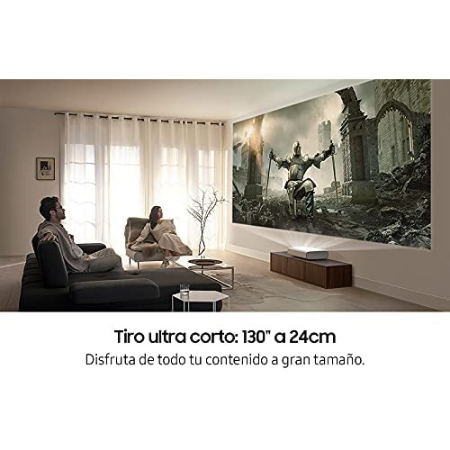 - Tiro ultra corto 130" a 24cm: coloca tu proyector donde prefieras. Solo necesitarás separarlo entre 11 y 24 cm de la pared para disfrutar de una gran pantalla