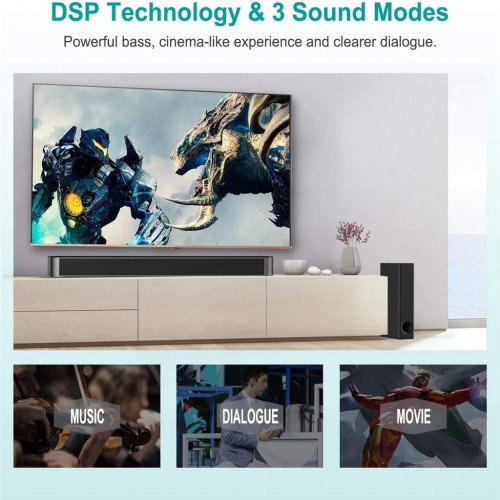 VejiA Altavoz de 120W, Sistema de TV para el hogar, Barra de Sonido, Altavoz estéreo 3D con Sonido Envolvente, subwoofer con Control Remoto