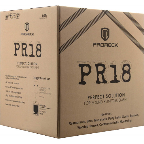 Subwoofer Gabinete PRORECK PR18 18 pulgadas 2000W P.M.P.O Active Powered PA DJ
