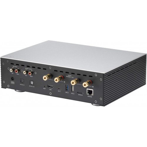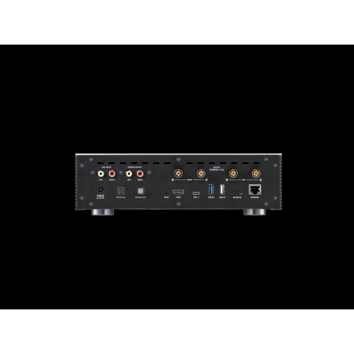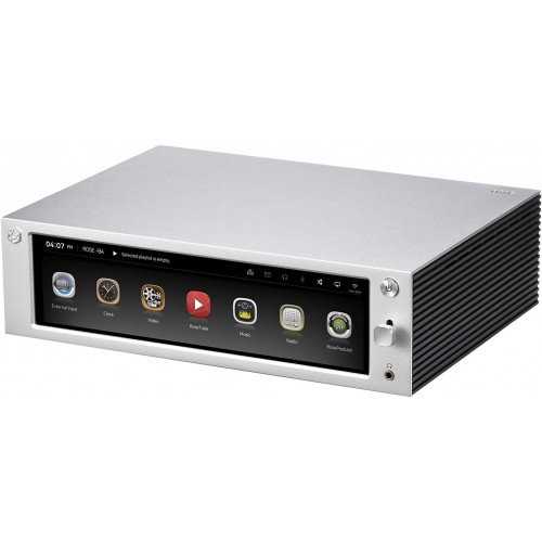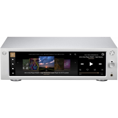 - Media Center, Streameur, Servidor, Rippeur, el RS201E es un reproductor de audio/vídeo multitarea y versátil, con un chip DAC ES9018K2M, un controlador de volumen y un amplificador de 2 x 50 W. El RS201E también cuenta con un procesador de vídeo 4K en salida HDMI para su función multimedia Center, así como un panel táctil frontal de 8,8 pulgadas con una fluidez impresionante. El RS201E es una auténtica cadena HiFi completa que ofrece prestaciones de sonido Audiophile, en un volumen muy contenido. Sus numerosas entradas y salidas, su amplia conectividad inalámbrica permiten al RS201E adaptarse a todas las situaciones, y a todos los usos. Podrá encontrar su lugar tanto en su sistema de audio actual como en una nueva instalación compacta. Lo mejor de todo, es posible desactivar completamente la parte analógica del dispositivo para usarlo en streamer/servidor puro. El RS201E integra un chip DAC Sabre ES9018K2M, segundo de un reloj FEMTO para deshacerse de un máximo de jitter. Este chip soporta DSD hasta DSD256, archivos PCM hasta 32/384 kHz, y MQA. La tecnología Hyperstream II presente en estos chips permite reconstruir la señal limpiamente, y el Time Domain Eliminator elimina eficazmente los ruidos digitales. El chip DAC está conectado a una salida preamp para salir a un amplificador externo, así como al amplificador interno Texas Instrument PurePath 2 x 50 W bajo 8 ohmios, clase D. Esta segunda salida permite conectar tus altavoces principales o enviar la señal a un sistema secundario (Home Cinema, por ejemplo). El RS201E dispone de numerosas entradas y salidas, para una conectividad universal – o casi : entradas: 1 x línea RCA estéreo, 1 x Toslink óptico 2 x USB (1 x USB 2.0, 1 x USB 3.0) – (formato soportado: NTFS/FAT32, 512 GB máximo para memoria USB, HDD externo hasta 4 TB) Ranura Micro SD (formato soportado: NTFS/FAT32 TB/NTFS/FAT32 TB/TFS/ TB/TFS/ TB/1 GB). FAT32, 512 GB máximo).