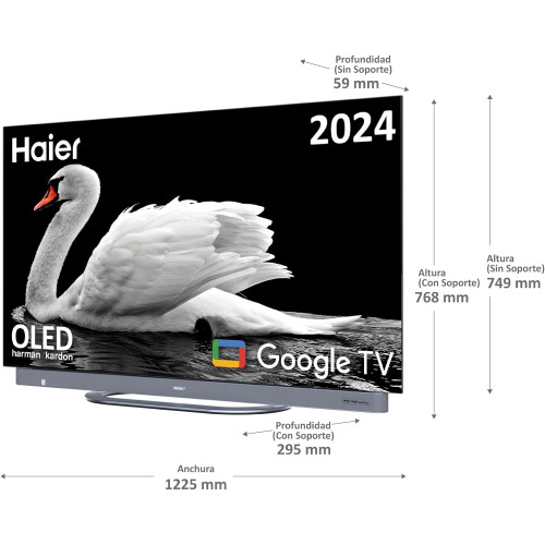 Haier OLED Harman Kardon 4K UHD H55C900UX - 55", Smart TV, Google TV, Dolby Atmos y Dolby Vision, HDR 10, Smart Remote Control, Google Assistant, Bluetooth 5.1, DBX TV, HDMI 2.1 x 4, Sin Marcos, 2024 [Clase de eficiencia energética F]