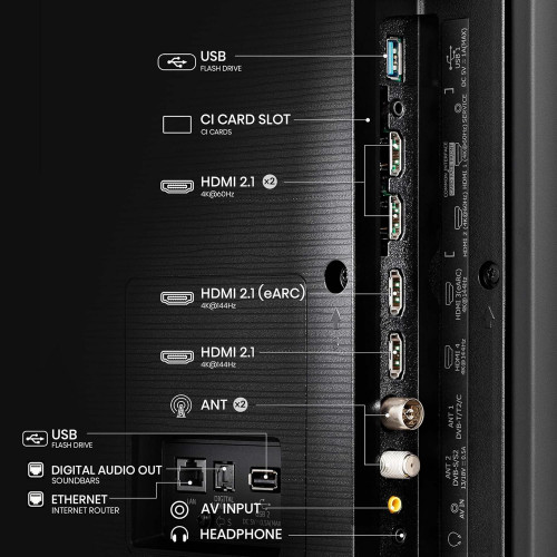• [Full Array Local Dimming] Los televisores Hisense respaldados por la tecnología Direct Full Array cuentan con una malla compacta de LED independientes que cubren toda la superficie del panel trasero. Al encender y apagar fuentes de luz individuales, estos LED permiten un control preciso del brillo y el contraste, lo que se traduce en colores vivos y nítidos, y negros profundos e hipnotizantes en todo el campo de visión.