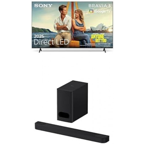 Sony Kit Bravia TV, Barra de Sonido y Subwoofer, Cine en casa con Sonido Envolvente Dolby Vision/Atmos y DTS:X, TV BRAVIA 3 85 Pulgadas, LED, Google TV (2025) y Bravia Theatre Bar 6