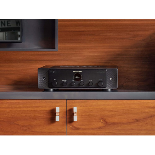 - Conéctate con altavoces integrados HEOS para un sistema de todo el hogar o transmisiones separadas en cada habitación Digital Heart Analog Soul MODEL 40n desbloquea el sonido de alta resolución de tus transmisiones de música digital favoritas (Spotify Apple Music Pandora Tidal y más) y tus propias bibliotecas de archivos de música a través de AirPlay Bluetooth y HEOS. Disfruta del audio desde tu televisor y sus dispositivos conectados utilizando la conectividad HDMI ARC (canal de retorno de audio) integrada. Disfruta de un rico y cálido sonido Marantz desde cualquier fuente. Cuenta con HEOS 2.2 canales integrados HDAM HDMI entrada ARC integrado MM Phono Stage funciona con Amazon Alexa Google Assistant o Apple Siri compatible con Spotify Apple Music Tidal AirPlay Bluetooth y más transmisión multihabitación con HEOS integrado. Conéctate sin esfuerzo a través de Bluetooth Apple AirPlay 2 o directamente desde la aplicación HEOS para reproducir todos tus favoritos de cientos de servicios de transmisión. Transmisión digital de alta resolución El modelo 40n integrado es para aquellos cuya colección de música es infinita y en línea. Conéctate a tu red con Wi-Fi o Ethernet. Con HEOS Built-in no necesitarás equipo adicional para transmitir tus canciones favoritas. El modelo 40n es compatible con Spotify AirPlay 2 Apple Music Bluetooth TIDAL TuneIn y más servicios, además de reproducción de tu propia colección a través de entrada USB-A o en servidores domésticos compatibles. El ecualizador fono musical Marantz La alegría de la reproducción de vinilo es audible y táctil, pero requiere electrónica altamente especializada para un alto rendimiento. El ecualizador fono musical Marantz está integrado para que puedas conectar un tocadiscos con cartucho MM directamente al modelo 40n. Disfrutarás de tus discos favoritos y descubrirás otros nuevos, todo sin la carga de electrónica adicional. Control de tono preciso. Tus preferencias de sonido están al alcance de tu mano. Ajusta los graves y agudos para adaptarse a tu sonido o bypass para el sonido más puro posible. Aspecto lujoso y tacto modelo 40n sigue una larga línea de piezas históricas de Marantz notables por su exquisito diseño. Se considera cada aspecto: desde la visualización clásica de ojos de buey de simetría de materiales de primera calidad e incluso un funcionamiento suave