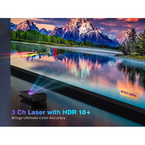 Proyector 4k Tiro Ultracorto TV, Dolby Audio 2500 ANSI Lumen, HDR 10 MEMC Operación Silenciosa 25dB 30.000 Horas, Relación de Contraste Dinámico de 15.000: 1, Pantalla Grande de 100 Pulgadas.