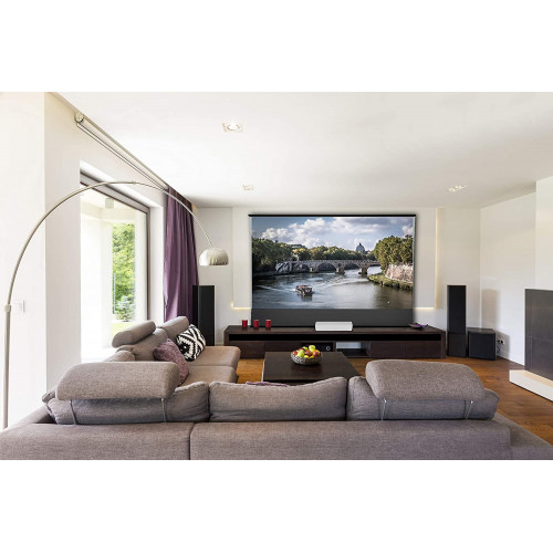 Si no puede o no quiere colocar un televisor grande en su sala de estar en casa o una pantalla en la sala de reuniones, pero no puede estar sin una pantalla de 100, 110 o 120 pulgadas... Entonces la pantalla motorizada eléctrica celexon CLR UST, que se levanta del suelo desde su esbelto chasis, es la solución perfecta gracias a su fácil y discreta integración en cualquier habitación.