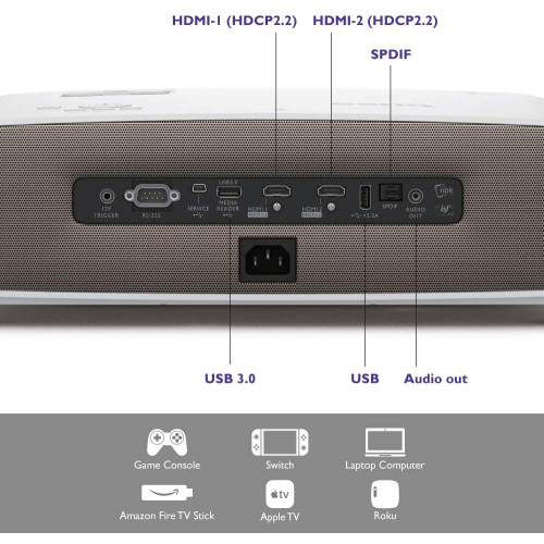 - HDR-PRO OPTIMIZADO PARA PROYECTORES (HDR10/HLG): HDR-PRO potenciado por el iris dinámico con contraste mejorado exclusivo y brillo HDR para disfrutar de imágenes realistas y detalladas. Admite HDR10 y HLG.