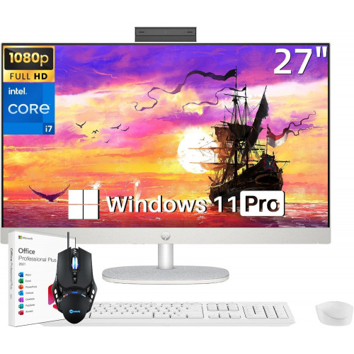 HP PC de escritorio todo en uno de 27 pulgadas, con licencia de por vida Office Pro y Win 11 Pro, pantalla FHD, Intel Core i7-1355U de 13ª generación, 64 GB de RAM, SSD de 4 TB, gráficos Intel Iris Xe.