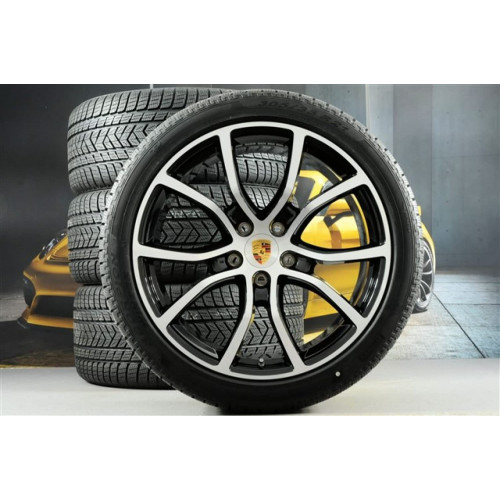 Compatible con Porsche Cayenne COUPÉ E3/9Y0 21" Exclusive Design Juego de ruedas de invierno con llantas de 9,5J x 21 ET46 + 11,0J x 21 ET49 + neumáticos de invierno Pirelli 275/40 R21 + 305/35 R21, con sensores RDK, color negro brillante + zona de giro brillante. en Solo apto para Cayenne Coupe.